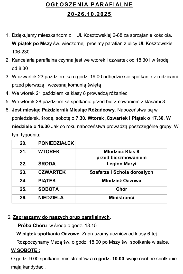 Zgodnie z art. 173 Prawa Telekomunikacyjnego informujemy, że strona www.parafiakosztowy.pl w celu realizacji usług korzysta z plików cookie. Dalsze korzystanie z witryny bez zmiany ustawień dotyczących cookies jest równoznaczne z wyrażeniem zgody na instalację jednego lub kilku plików cookie na urządzeniu końcowym.