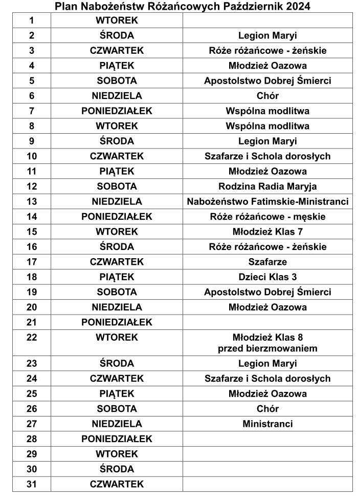 Plan nabożeństw różańcowych 2024